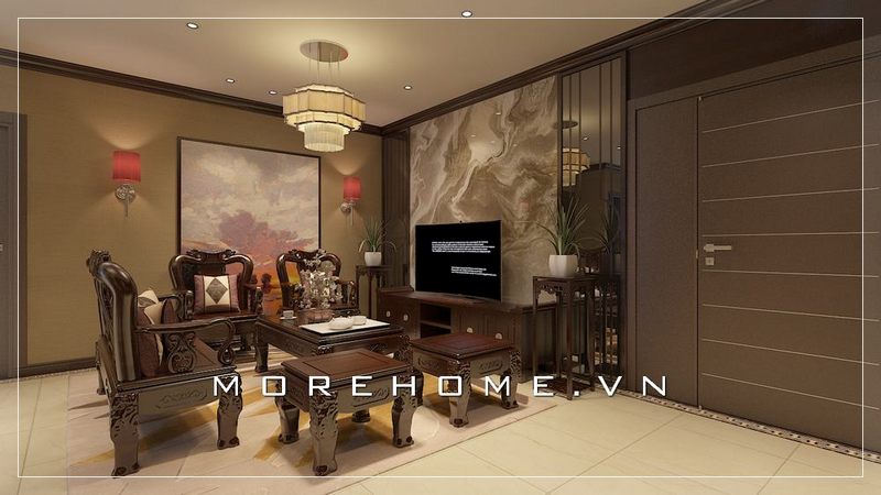 . Không cần quá cầu kỳ trong việc trang trí, thiết kế phòng khách chung cư cao cấp sử dụng những chi tiết đơn giản nhưng vẫn đảm bảo được sự sang trọng và tiện nghi của không gian.