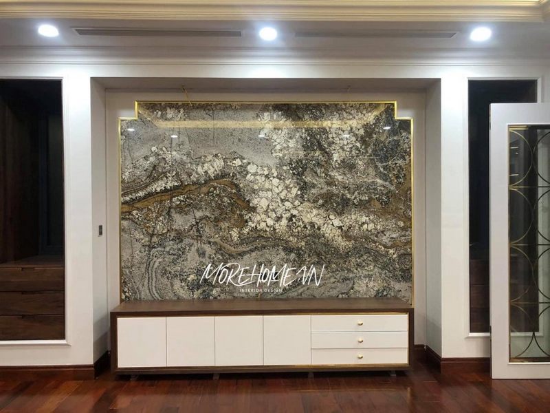 Sử dụng đá granite ốp tường phòng khách mang đến vẻ đẹp hiện đại