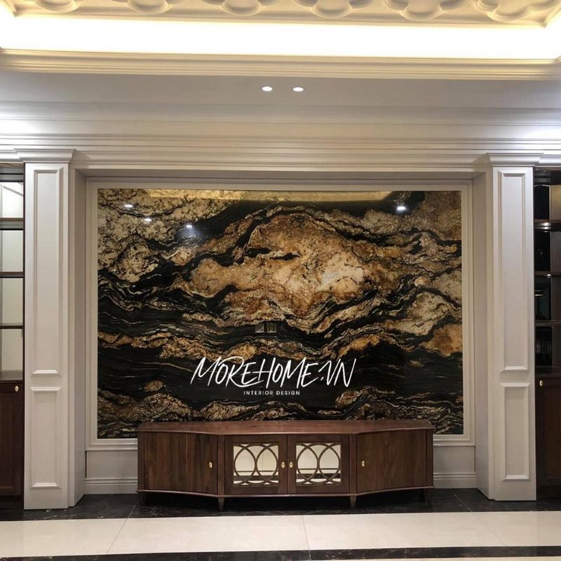 Đá marble ốp tường phòng khách là dòng đá cao cấp có mẫu mã đa dạng, từ màu sáng cho tới màu tối. Bề mặt đá có độ bóng cực cao và các đường vân tự nhiên sống đông. Bề mặt đá có khả năng chống chày xước và bám bẩn.