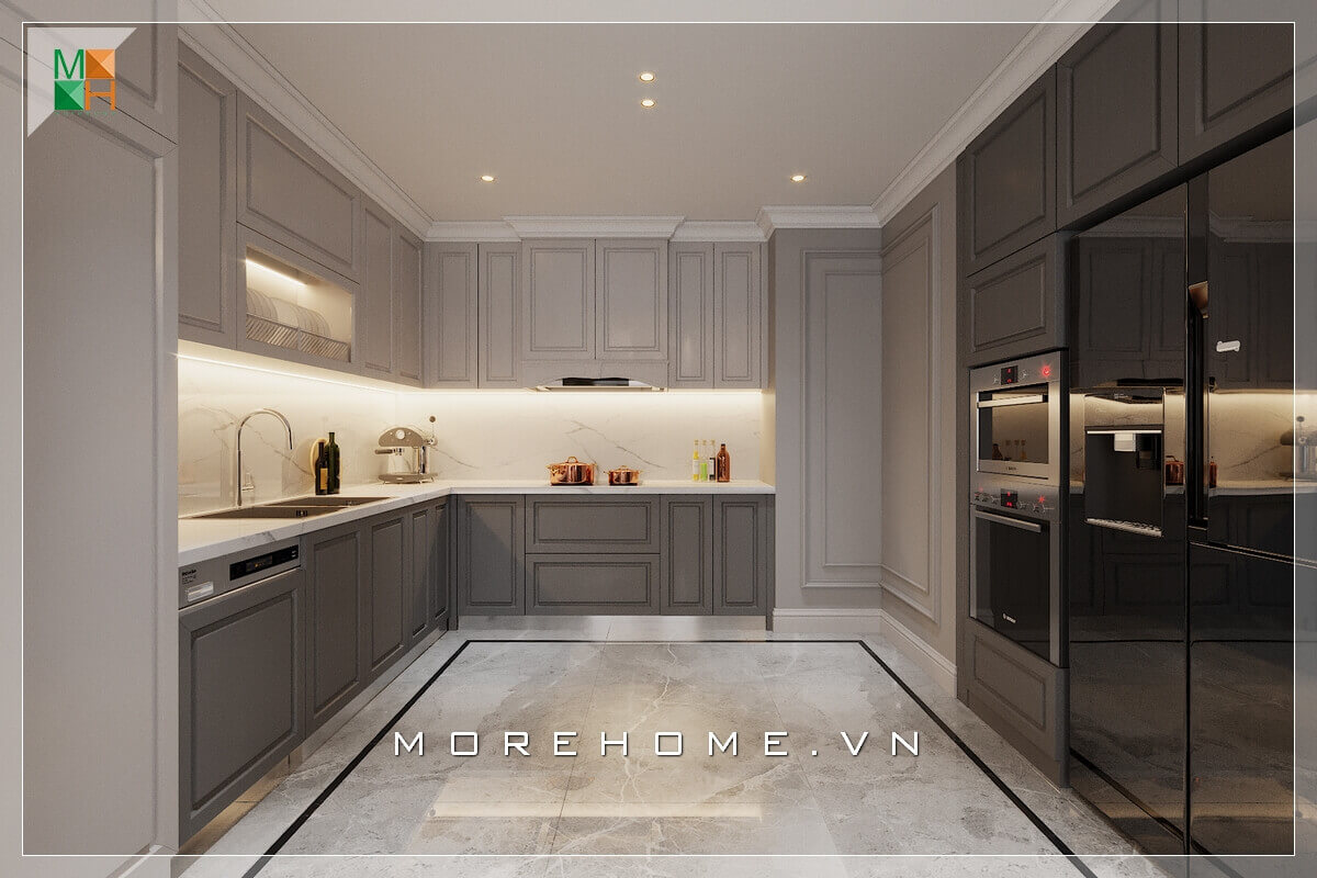 Thiết kế tinh tế tỉ mỉ của tủ bếp phong cách tân cổ điển đã hoàn toàn chinh phục khách hàng