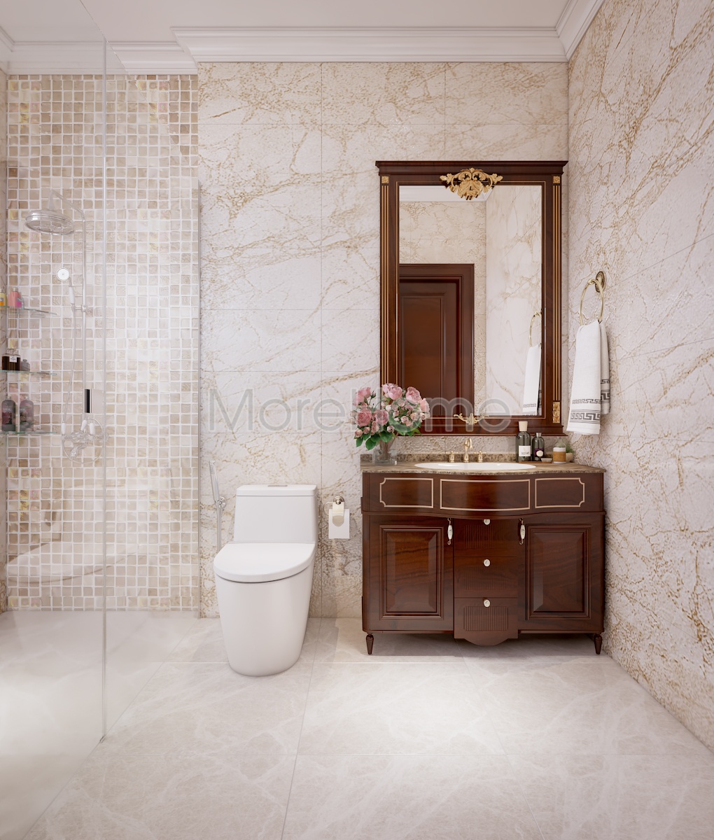 Đá vân gỗ ốp nhà tắm biệt thự Tân Bình